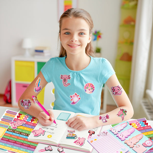 - Gift: Whether you're buying it for yourself or for your friends, classmate, teacher, family, colleague, daily use, birthday, Christmas, Thanksgiving, this axolotl themed sticky notes notebooks and pens set make an great gift choice